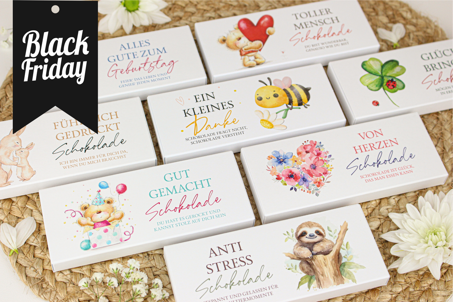 Schokolade, die von Herzen kommt! Entdecke unsere fair produzierte Schokolade mit vielen liebevollen Motiven. Das perfekte Geschenk für jeden Anlass – und dank Black Friday sparst du automatisch 30% auf ALLES im Shop.